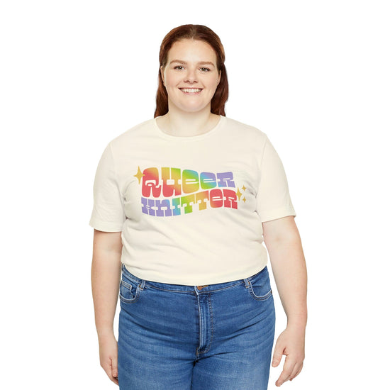 Introducing the "Queer Knitter" t-shirt - the perfect way to showcase your love for both knitting and your LGBTQ+ identity! Crafted from high-quality cotton, this t-shirt is comfortable, durable, and perfect for everyday wear. The bold and cool font used for the phrase "Queer Knitter" makes a statement, while the classic design ensures that it will never go out of style. Whether you're heading to a pride parade, a knitting circle, or just running errands around town, this t-shirt is sure to turn heads and start conversations. It's the perfect way to show your support for both the LGBTQ+ community and the crafting community, all while looking stylish and comfortable. Available in a range of sizes and colors, the "Queer Knitter" t-shirt is a must-have for anyone who is proud to be both queer and a knitter. So why wait? Grab yours today and show the world that you're proud to be who you are!